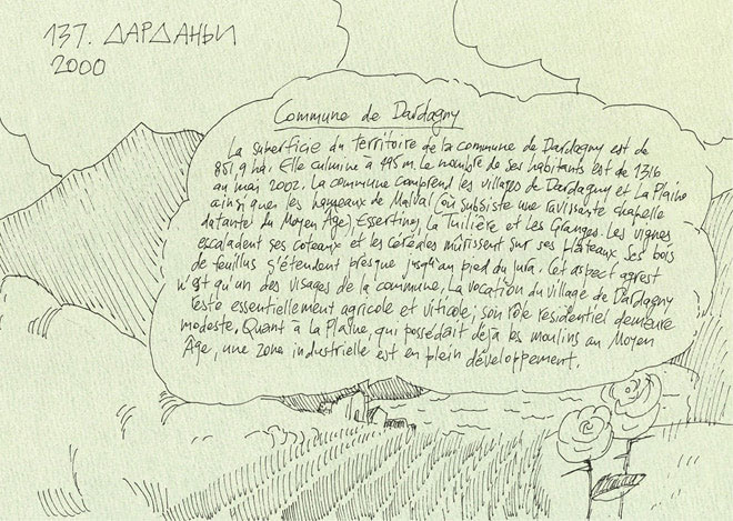 Приехали в деревню Дарданьи на границу Франции, всю погруженную в виноградники, серо-бело-рыжую, уютную, будто спящая пожилая собака. Перекусили в ресторанчике, с террасы которого расстилался широкий вид на Женеву, озеро и обрамляющие его горы. Вино было превосходно, сыр и провесная ветчина тоже.