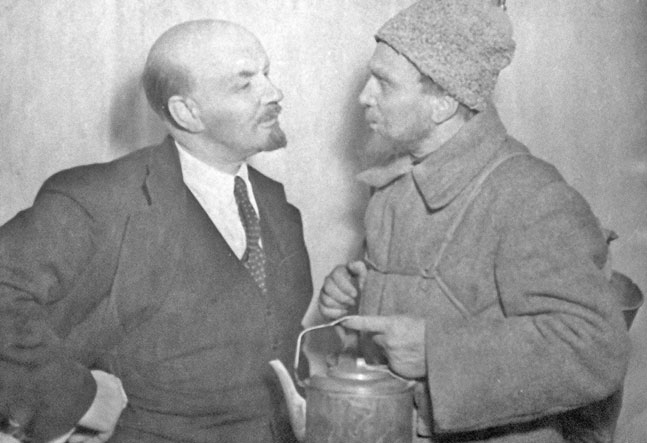 И вот день уже склоняется к вечеру, начинается пурга. Звуковую аппаратуру устанавливать уже нет времени, поэтому, перекрикивая шум двигателя, который вертолетчик не рискует на морозе выключать, актеры буквально вопят друг на друга. Прямо скажем, зрелище чудовищное: сидят полукругом в нарядных кухлянках коряки, недалеко – кораль с оленями, работающий на холостых оборотах вертолет, а между вертолетом и оленеводами – чуть держащийся на ногах Ленин, в кирпично-красном монтюре и с полуотклеившейся бороденкой, из которой торчит прилипший кусочек квашеной капусты, которой закусывали холодный спирт, нахлобучивший кепку по самые уши и в накинутом на черное пальтишко, неведомо откуда взявшемся ковре! И собственно «человек с ружьем», солдат Иван Шадрин, который, чуть пошатываясь, опирается на свое знаменитое ружье. Причем оба артиста практически одновременно говорят свой текст, которого никто не слышит. Оленеводы тем не менее восторженно глядят на Ильича в ковре и пытаются угадывать, о чем он говорит.