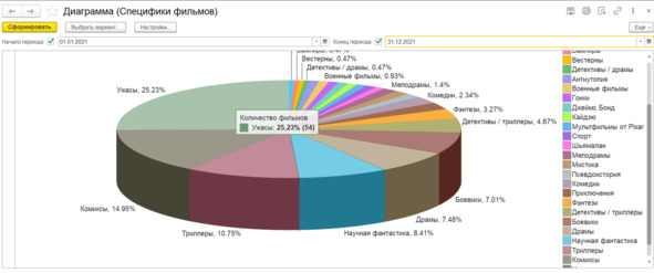Диаграмма-отчет моего кино-сычевания за 2021 год