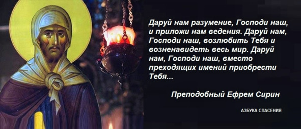 Даруй нам разумение, Господи наш, и приложи нам ведения. Даруй нам, Господи наш, возлюбить Тебя и возненавидеть весь мир. Даруй нам, Господи наш, вместо преходящих имений приобрести Тебя… Преподобный Ефрем Сирин