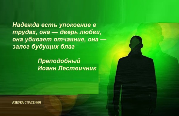 Надежда есть упокоение в трудах, она – дверь любви, она убивает отчаяние, она – залог будущих благ. Преподобный Иоанн Лествичник