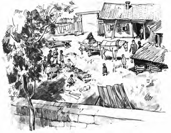 Поднимется хохот. Колька вспыхнет и наметит обидчику прямо в ухо. Но Яшка увернется и со смехом отбежит в сторону. Колька пустится за ним, Яшка от него. Смех и общее веселье.