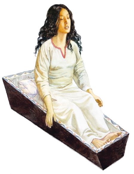 И он принялся прилепливать восковые свечи ко всем карнизам, налоям и образам, не жалея их нимало, и скоро вся церковь наполнилась светом. Вверху только мрак сделался как будто сильнее, и мрачные образа глядели угрюмей из старинных резных рам, кое-где сверкавших позолотой. Он подошел ко гробу, с робостию посмотрел в лицо умершей и не мог не зажмурить, несколько вздрогнувши, своих глаз.