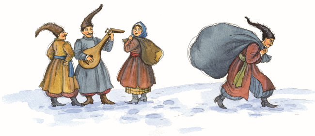 – Помоги, человек добрый, мешки снесть! кто-то колядовал, да и кинул посереди дороги. Добром разделимся пополам.