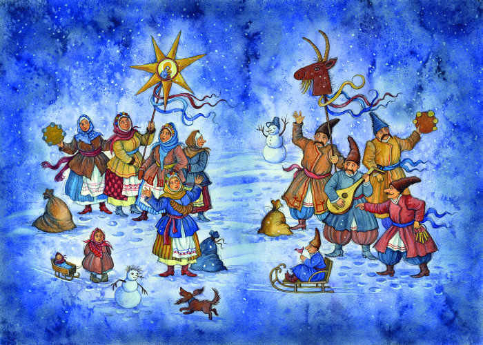 Шумнее и шумнее раздавались по улицам песни и крики. Толпы толкавшегося народа были увеличены еще пришедшими из соседних деревень. Парубки шалили и бесились вволю. Часто между колядками слышалась какая-нибудь веселая песня, которую тут же успел сложить кто-нибудь из молодых козаков. То вдруг один из толпы вместо колядки отпускал щедровку и ревел во все горло: