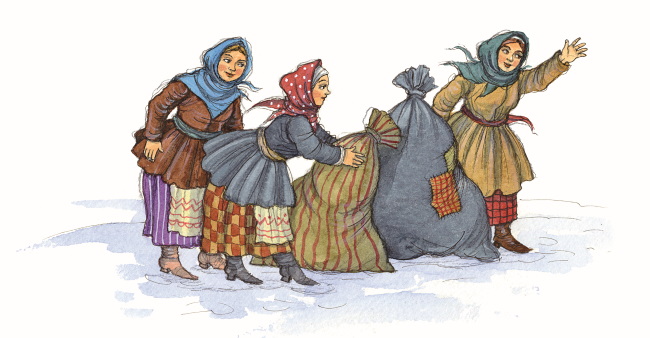 Девушки немного удивились, не найдя одного мешка. «Нечего делать, будет с нас и этого» – лепетала Оксана. Все принялись за мешок и взвалили его на санки.