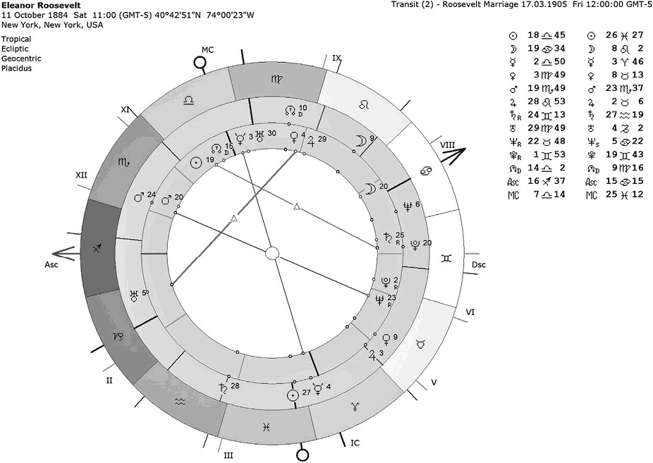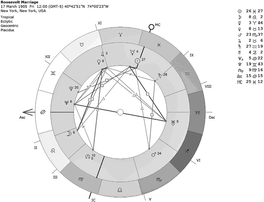 Рис. 4.2. Гороскоп, построенный на день свадьбы Элеоноры Рузвельт