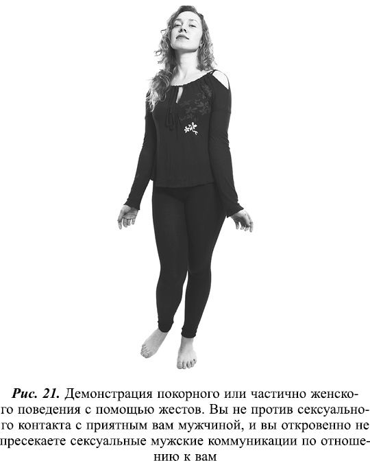 Итак, первый вариант выборочного применения привлекательных жестов – демонстрация покорного или, как мы говорим, частично женского поведения с помощью жестов.