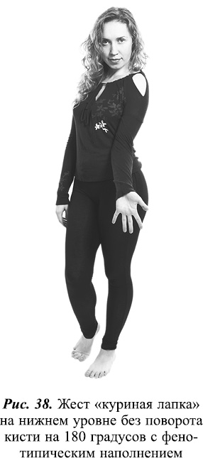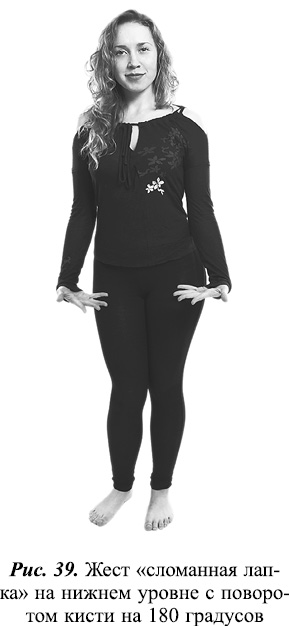 Жест «куриная лапка» на нижнем уровне может быть дополнен жестом «сломанная лапка» с поворотом кисти на 180 градусов (рис. 39).