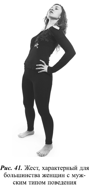 Как видим, жест, характерный для большинства женщин с мужским типом поведения (рис. 41), отличается от жестов «сломанная лапка» и «куриная лапка». Он совсем не женский.