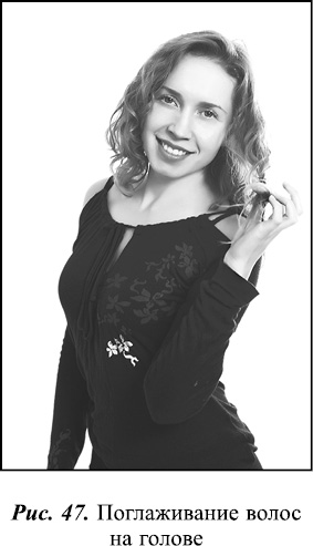 Чтобы выполнить поглаживание волос на голове по женскому типу, нужно двигать рукой по затылку снизу вверх (рис. 47).