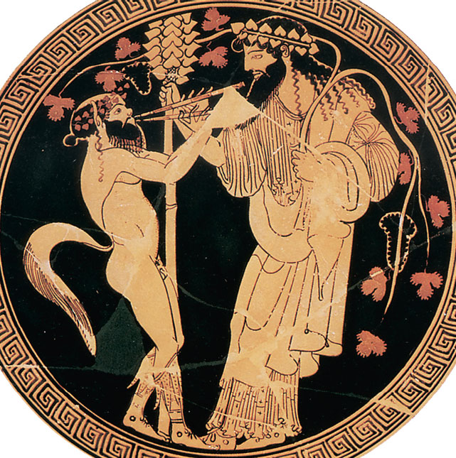 ПанСреди свиты Диониса часто можно видеть бога Пана. Когда родился Пан, мать его, нимфа Дриопа, взглянув на сына, в ужасе обратилась в бегство. Он родился с козлиными ногами и рогами и с длинной бородой. Но отец его, Гермес, обрадовался рождению сына, он взял его на руки и отнес на Олимп. Все боги радовались рождению Пана и смеялись, глядя на него.