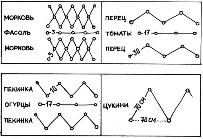 Все эти культуры сажаются двумя рядами в шахматном порядке.
