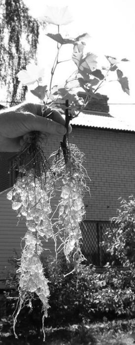 В смеси песка и гидрогеля с добавкой гуматного удобрения хорошо укореняются чубуки, доращиваются саженцы, цветы и вообще любые растения. Корни врастают в гранулы геля, и растение просто не замечает пересадки – продолжает расти, притащив свою родную влагу с собой (рис. 196 и 197). Фотографии присланы знаменитым смоленским садоводом и ученым Ю.М. Чугуевым.