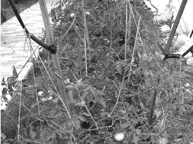 Недавно мы повторили этот опыт: в середине августа обрезали богато отплодоносившие грунтовые томаты (рис. 203). Срезали все, кроме редких побегов с цветками и отдельными плодами. Второй урожай нарос очень приличный! Жаль, его наполовину продырявила хлопковая совка, озверевшая как раз в это время. Но способ отлично себя оправдывает.