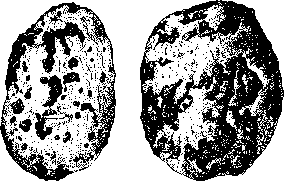 Рис. 2.58. Ризоктониоз картофеля (Rhizoctonia solani). Склероции на