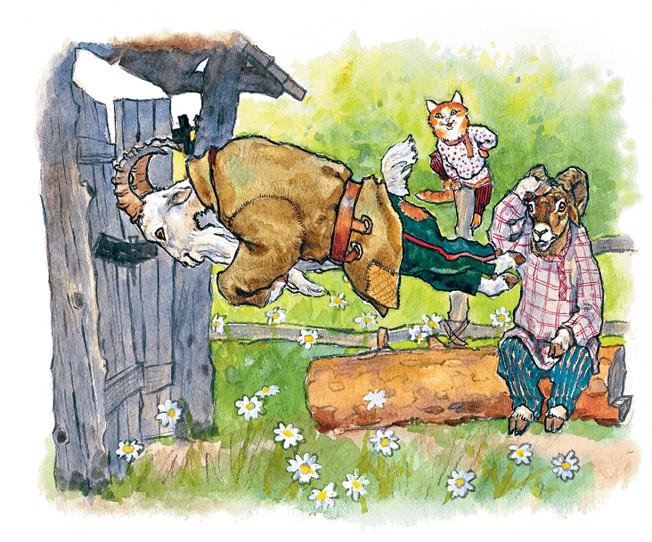 А козёл да баран подхватили мурлышку на спину и скорее домой: