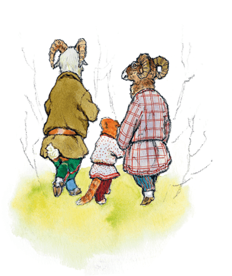 А старик со старухой были рады-радёшеньки, когда козёл с бараном вернулись.