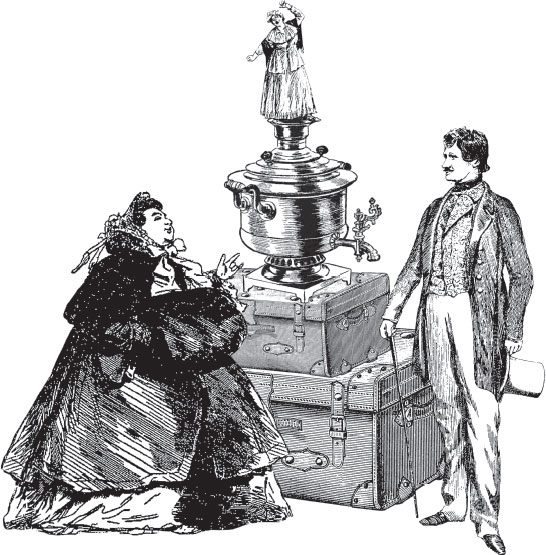 – Не извольте беспокоиться, маменька. Я часа два тому назад поел уж на станции, – отвечал сын. – Антрекот с картофелем мертдотель съел, а вот самоварчик, чтобы губы побаловать, – это в лучшем виде… За чаем я даже сам вас питерскими закусками угощать буду. Есть у меня даже бутылочка крапивинской рябиновки для папашеньки.