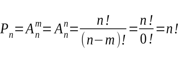 В случае, если n = m (см. размещения без повторений) А из n элементов по m называется перестановкой множества x.
