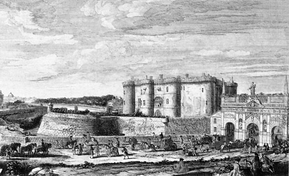 Поначалу Бастилия была вовсе не тюрьмой. Она являлась составной частью укреплений, возведенных в XIV в. для защиты Парижа от англичан. Фундамент ее был заложен в 1370 г., примерно в середине Столетней войны. Сперва построили две башни, между собой они были соединены стенами; стены связывали их и с другими, уже имевшимися укреплениями. Позднее добавились еще две башни, а в 1383 г. Карл IV велел пристроить четыре новые башни. Теперь их было уже восемь, их связывали высокие стены, внутри же образовался просторный двор. Высота крепости составляла примерно 23 метра.