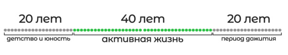 Если мы от этой средней продолжительности жизни отминусуем эти 30—40 лет, то у нас останется приблизительно 30—40 лет активной жизни, в течение которой мы и можем что-то продуктивно делать.