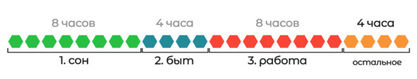 3. Время, которое мы тратим на зарабатывание денег (8 часов).