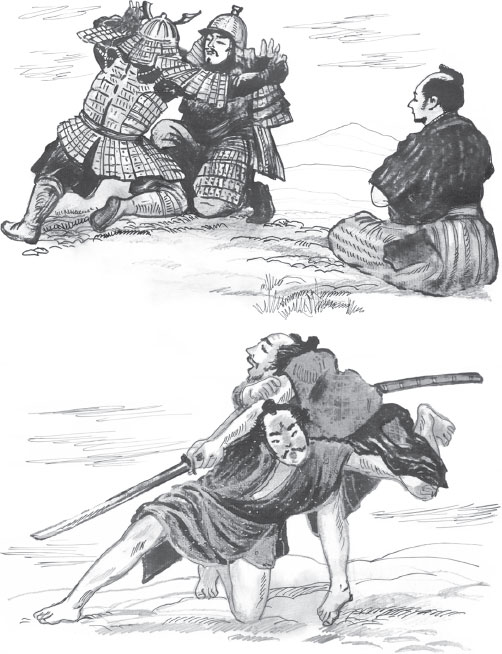 Или вот такая легенда. На этот раз техника «голыми руками против копья». Однажды искусство дзю-дзюцу продемонстрировал Ягю Мунэнори – следующий великий мастер школы Ягю-рю. Третий сёгун династии Токугава Иэмицу решил проверить умение своего учителя фехтования: «Войдя на аудиенцию к сёгуну, Мунэнори сел и положил ладони на татами, как делали все вассалы, выказывая тем самым свое почтение господину. Внезапно Иэмицу схватил копье и попытался ударить ничего не подозревающего Мунэнори и с удивлением обнаружил себя распростертым на полу! Мунэнори почувствовал намерение сёгуна еще до того, как тот сделал первое движение, и сбил его с ног, когда он собирался нанести удар»[8]8