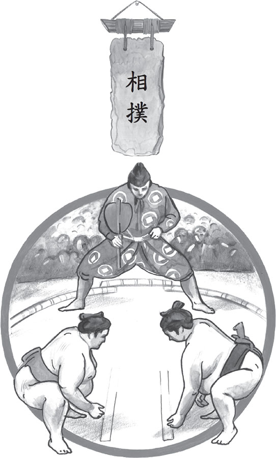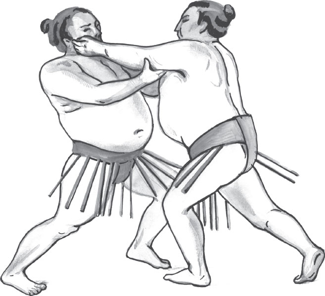 [Закрыть]. Почти мирный характер схватки позволяет сказать, что такой вид борьбы, получивший впоследствии название «сумо», не был создан для ведения боя на поле битвы. Именно из-за этого он резко выделялся среди прочих видов единоборств.