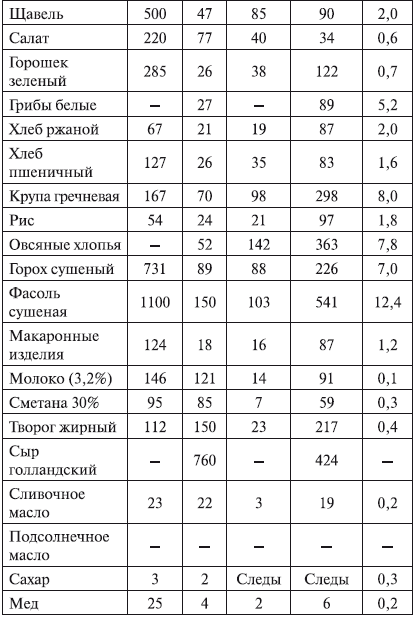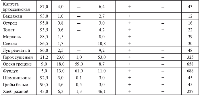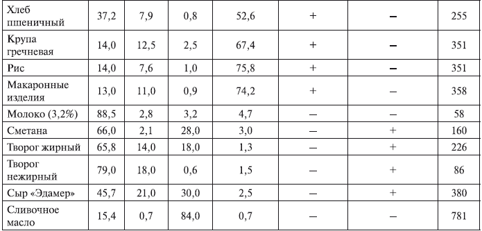 Химический состав и калорийность основных продуктов питания