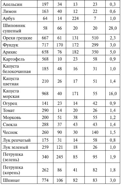 Калий необходим для нормального функционирования сердечно-сосудистой системы, регуляции вводно-солевого обмена. Потребность в калии составляет 5 г в сутки. Он содержится в овсяной крупе, картофеле, изюме, крыжовнике, абрикосах.