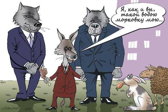 Не мешкая с решением назревшего вопроса, к Шакалу-управдому гонца послали звери для допроса. Посланец горемык услышал от охранников успокоительный ответ: мол, у Шакала гости, входа нет, нельзя прервать благотворительный банкет.