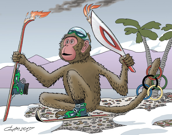 С начальством прямо никакого сладу: решили чудики в субтропиках устроить зимнюю Олимпиаду. Опустошив казны запасы, возвели крутые стадионы в надежде, что вернутся брошенные в пропасть миллионы. И, дабы остальных животных за собой увлечь, постановили: символ празднества великого зажечь.