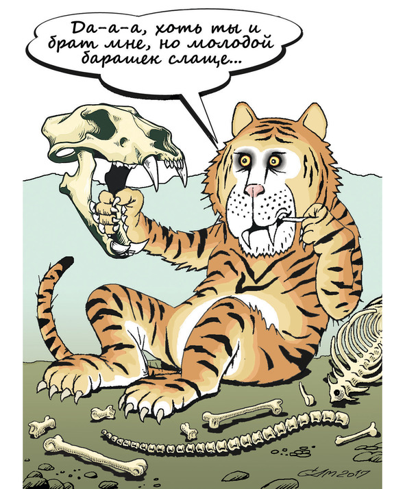 Однажды к Тигру завернули по пути непрошеные гости и обнаружили вокруг землянки шутника… обглоданные кости. И да простят меня любители живой природы, изящной прозы и литературы!
