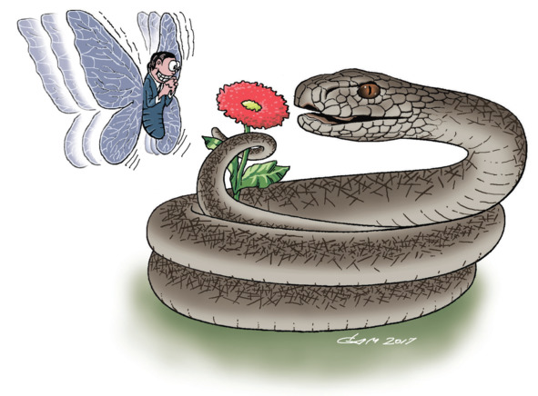 Змея свернула хвост кольцом, месть оставляя на потом. И для укуса место выбирала, чтоб было меньше оснований для скандала. Завидев Маргаритку, о злодее нашептала, и та в слезах прикрыла её жало.