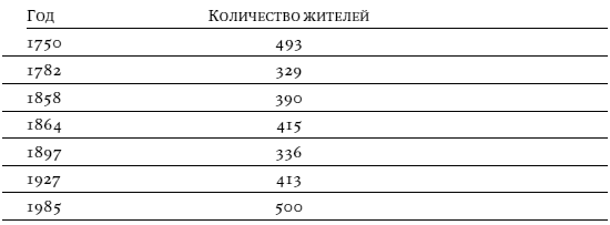Трудно говорить о динамике численности населения в отношении конкретного поселка Русское Устье. В разных источниках приводятся довольно сильно различающиеся цифры. Очевидно, что подсчеты в каких-то случаях делались для одного поселка, а в каких-то – для совокупности всех поселков, где проживают индигирцы (см. табл. 1.1). Так, Зензинов (1914в: 26) указывает, что один из сподвижников Врангеля провел лето 1823 года в Русском Устье и насчитал в трех поселках (Русское Устье, Едомка, Елонское Устье) 108 мужчин (все русские). Далее Зензинов (там же, 27) сообщает, что по переписи 1750 года население Русского Устья составляло 493 человека – очевидно, что здесь имеются в виду все поселки региона. С 1822 года, по сообщению Зензинова, численность населения колебалась от 200 до 400 человек – ясно, что речь опять же идет о целом районе. В работе Н.М. Алексеева (1948: 61) приводятся данные на 1946 год по русскоустьинскому наслегу: 332 человека. В работе И.И. Агафонова и др. (1933: 90) приводятся некоторые сведения на конец 1920-х годов и между прочим сообщается, что дельту Индигирки (протоки Русскую, Среднюю и Колымскую) занимают около 300 русских. Биркенгоф (1972: 29—30) также приводит данные о численности населения на конец 1920-х – начало 1930-х годов. Его данные интересны прежде всего тем, что представляют население по отдельным населенным пунктам, расположенным на разных протоках Индигирки (см. табл. 1.2).