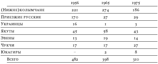 Проводимая советской властью политика освоения Севера вызвала наплыв переселенцев из Европейской части СССР, в основном русских. Другой новый этнический компонент, сыгравший существенную роль в изменении структуры населения района Нижней Колымы, – украинцы[22]22