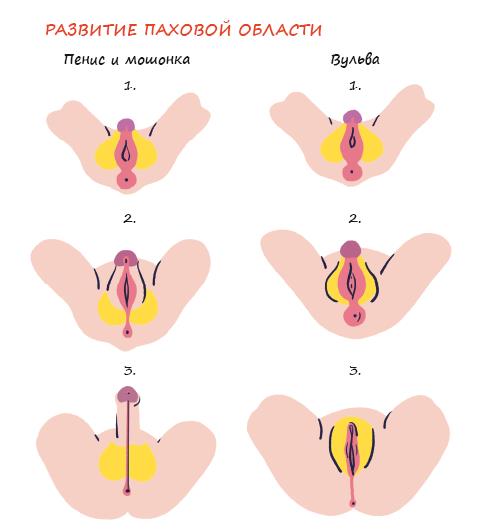 Пах мальчика и девочки состоит из совершенно одинаковых частей. Сначала эти области наших тел были одинаковыми, но в какой-то момент началось постепенное развитие вульвы или пениса с мошонкой.