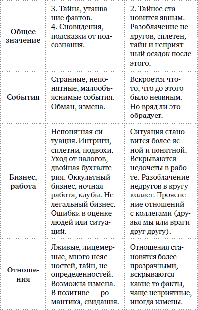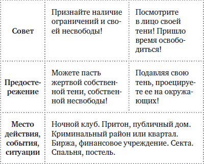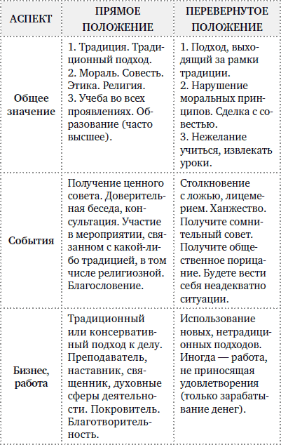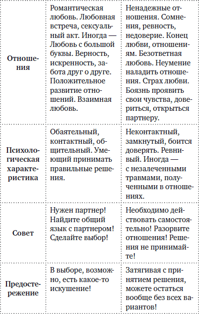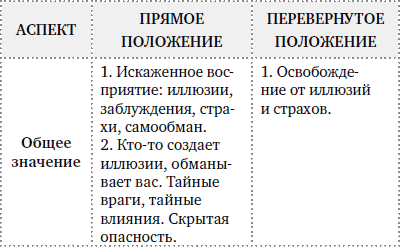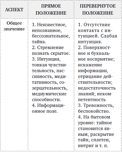 Тайные значения даны по книге: М. Кац и Т. Гудвин. Секреты Таро Уэйта-Смит: Все, что надо знать о самой популярной колоде Таро. – М., ООО «Книжное издательство „София“», 2016.