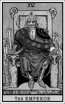 Властный мужчина с длинной седой бородой сидит на троне. На голове монарха – золотая корона, украшенная драгоценными камнями и символом Овна. Под красной королевской мантией видны воинские доспехи. Он – военачальник, готовый взять на себя командование армией. В правой руке – золотой анх (ключ жизни, символ бессмертия души и мудрости). В левой руке – держава, древнейший символ земной власти. Трон Императора четырехугольный, жестко очерченной формы. Его украшают головы четырех овнов. Овен (баран, агнец) символизирует солнечную мужскую энергию, огонь, силу, решительность, смелость, страстность. Это первопроходец в мире земном и в мире духовном. Уэйт называет его делателем, реализатором, управителем этого мира. Трон стоит на возвышении среди скалистых горных вершин, внизу протекает река. Не та ли, что на предыдущей карте – аркане Императрица? Они достойная королевская пара. Ключевые смыслы: власть, авторитет, сила. Тайное значение: «Всегда уже слишком поздно».