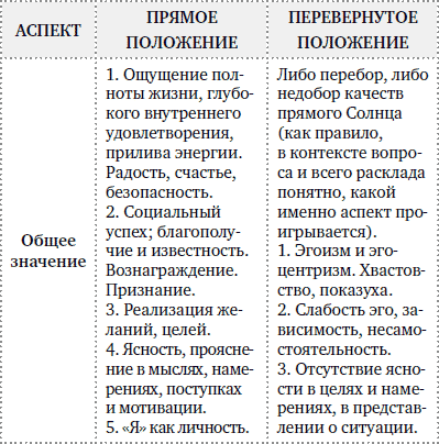• позиция 1 – что говорит в пользу «Да» – Солнце в перевернутом положении. В принципе, ждет успех, хотя и неполный или чем-то омраченный;
