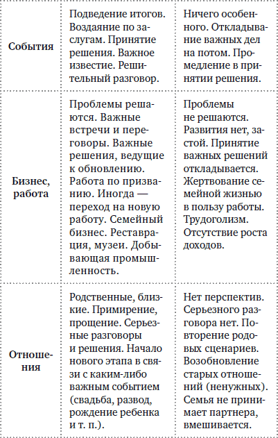 Если запрос кверента касается развития ситуации, нужно мысленно разделить карту одной вертикальной линией на две части: в этом случае ее крайняя левая часть покажет нам прошлое, причину ситуации, то, что повлекло за собой текущую ситуацию. Символы на линии раздела и в непосредственной близости от нее показывают настоящее положение дел. Крайняя правая часть показывает перспективы, наиболее вероятное развитие ситуации[17]17