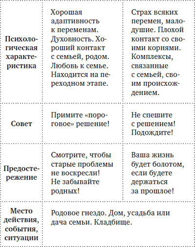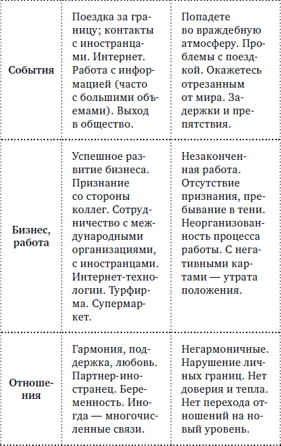 Сигнификатор этого типа относится к смысловым, поскольку он дает много информации об актуальном состоянии кверента или ситуации в целом.
