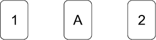 2. Две поясняющие карты. «Об этом, а не об этом». Бывает так, что в раскладе трудно понять какую-либо карту (A) или таролог сомневается в том, что он правильно понимает читаемую карту. Тогда достают две дополнительные карты: одна (1) говорит, что непонятная «об этом», а вторая (2)«не об этом». Дополнительный расклад выглядит так: