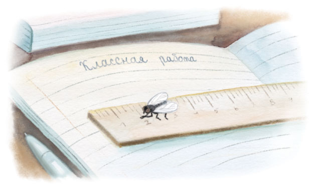 Жужжание оборвалось. Муха приземлилась на тетрадь по русскому языку и затихла.