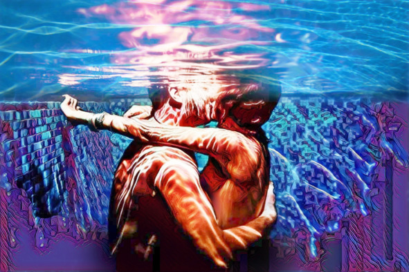 Затем ставит бокал, берет меня за руку, резко притягивает к себе и начинает целовать, прижимая к бортику бассейна, а затем увлекает за собой под воду, не отрываясь от моих губ.