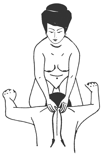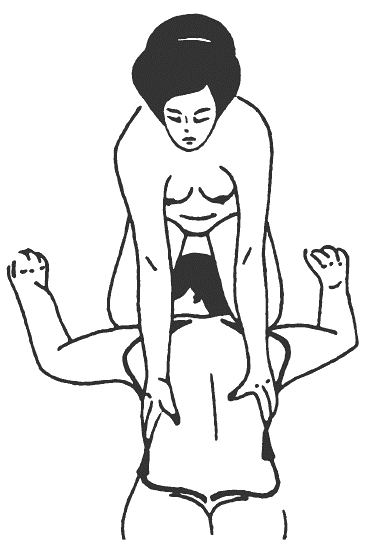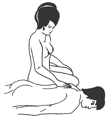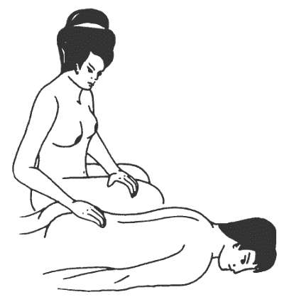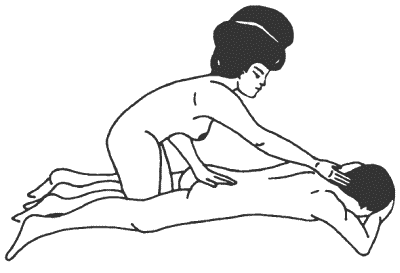 Положите руки по обе стороны крестца, пальцы направлены в сторону головы. Затем подушечками больших пальцев, попеременно левым и правым, надавливайте и растирайте небольшую область чуть выше крестца. Выполняйте надавливающе-растирающие движения монотонно, с небольшим давлением в течение некоторого времени. Чем легче будут ваши движения, тем более сильным будет возбуждение.
