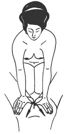 После выполнения приема положите руку на крестец, на Востоке данная область тела считается местом концентрации сексуальной энергии человека. Пусть тепло вашей руки распространится на эту область. Затем аккуратно надавите ладонью и приступайте к следующему приему.