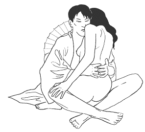 Мужчина садится скрестив ноги. Женщина опускается лоном на его член, обхватывая ногами талию и руками шею. Мужчина держит руки на талии женщины, стараясь как можно ближе прижать ее к себе. Чем ближе находятся партнеры друг к другу, тем большего наслаждения достигнут.