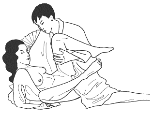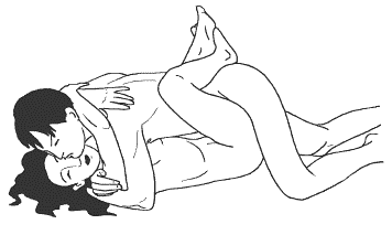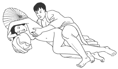 Женщина ложится набок, слегка подтягивая согнутые ноги к груди. Мужчина ложится сзади партнерши и, обхватив колени и талию, нежно вводит член в ее лоно. Ноги женщины сведены вместе. Для достижения большего блаженства, мужчина может ласкать грудь женщины руками. Существует несколько вариантов этой позы любви.